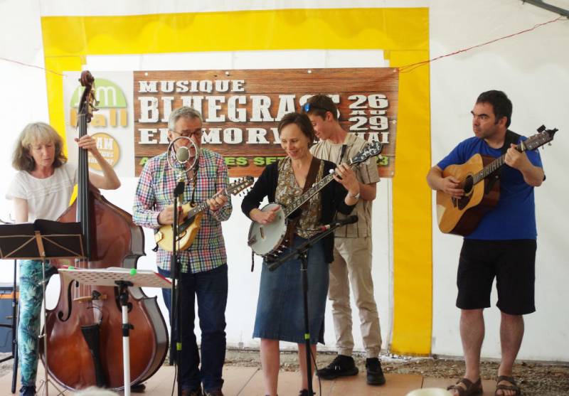 Mais on a été studieux aussi, en assistant aux ateliers proposés samedi par Patrick Peillon (guitare), Pierre Bastide (banjo) et André Derennes (banjo). L'après-midi du dimanche a été mémorable, avec un joli spectacle sous le chapiteau (excellente acoustique avec une sono discrète et efficace).