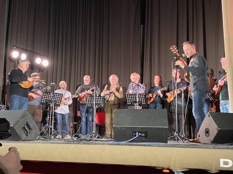 Vendredi soir le concert des classes, chaque atelier présente une prestation, l'occasion d'entendre Schubert au banjo, une chanson de Sanséverino, un blues à la mandoline, une jolie ballade au ukulélé et la soirée se termine par un bal !