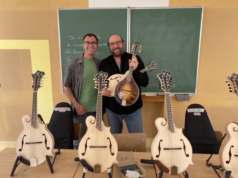 Toute la semaine, l'excellent Jean-Marc Perrin, luthier de son état est disponible pour entretenir réparer, présenter ses instruments, et échanger avec tout un chacun qui passe par là en exprimant sa passion. Il avait apporté de nouvelles mandolines fabriquées avec des essences différentes, l'occasion de percevoir ce qui fait la richesse de ses instruments.