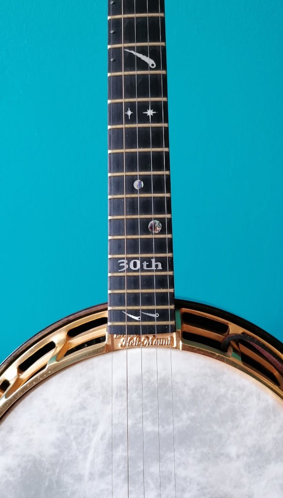 Revenons à Tom pour parler de sa manière très personnelle de célébrer ses 30 ans de métier : il a fabriqué 30 banjos numérotés qui possèdent les caractéristiques de ses plus belles réalisations avec une incrustation "30th" à la 19ème case. J'ai la chance de posséder le numéro 21 et j'ai été très surpris de voir Tom me reconnaître cette année quand je suis allé le voir.
