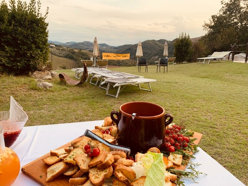 Avant le repas c’est… l’apéro : des vins locaux accompagnés de fromages ou de gourmandises mitonnées par la cuisinière. Si le cœur vous en dit, il est possible de jouer un peu de musique à ce moment pour agrémenter l’instant. Un vin blanc des Marches dégusté face au coucher de soleil en écoutant une bonne musique n’est pas la punition la plus sévère que j’ai eu à subir…
