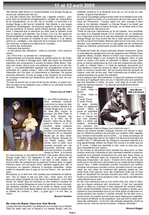 Lorsque Bernard (Gauthier) m’a téléphoné en me disant qu’un Master Class de banjo avait lieu à Pâques à La Grange Rouge, cela m’a intéressé. Quand je lui ai demandé avec qui, je n’en ai pas cru mes oreilles : le grand Alan Munde !