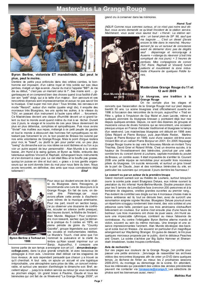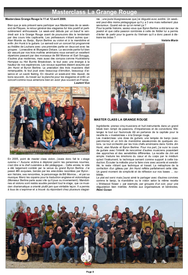 En Juin 2008, Dominique, un vieux camarade musicien m’annonce la venue de Alan Munde et Byron Berline à la Grange Rouge pour un master class...Ben voyons, et pourquoi pas Bela Fleck et Sam Bush donnant des cours à la MJC de St Saulve ! (Haut lieu du Bluegrass en France ...si si). Et pourtant, après quelques mails échangés et euros récoltés, nous partîmes donc en direction de La Chapelle