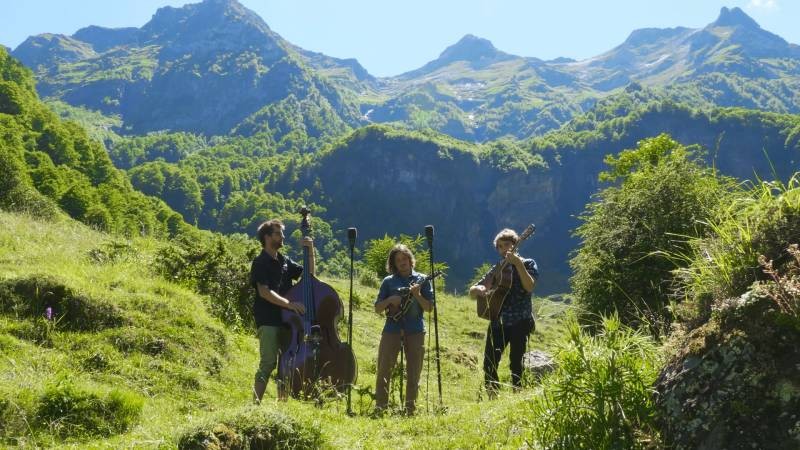 Trio bluegrass : mandoline, guitare, contrebasse et 3 voix harmonisées.