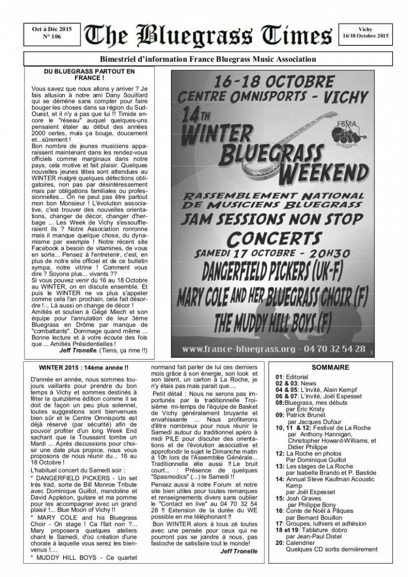 Octobre 2015. Ce numéro du Bluegrass Times est ici en libre consultation et téléchargement. Parcourez-le et, si vous appréciez sa qualité éditoriale, adhérez à France Bluegrass Musique Association, vous recevrez gratuitement l'édition numérique à chaque parution.