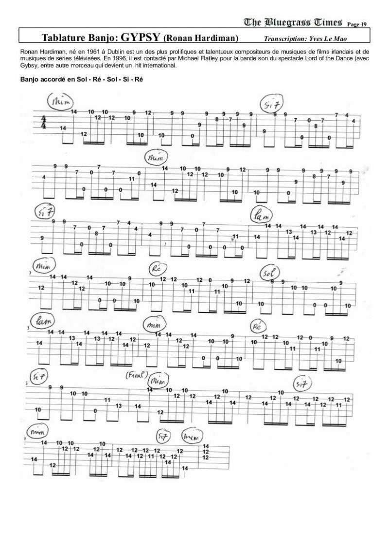 • Tablature Banjo : « Gypsy »